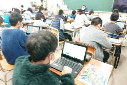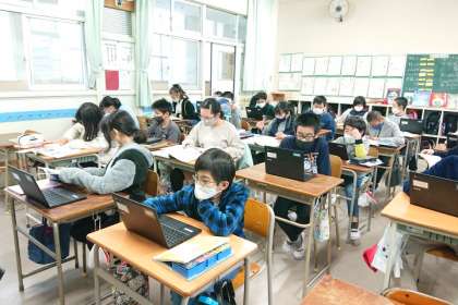 ノートに教科書の内容をまとめたり、デジタルドリルの問題を解いたりして、2学期の理科の学習のまとめをしています。