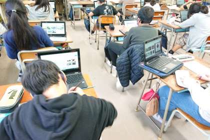 1人1台パソコンを使って、「くらしの中の和と洋」について調べています。