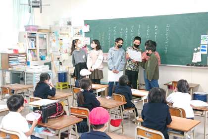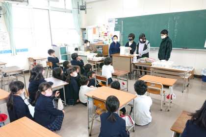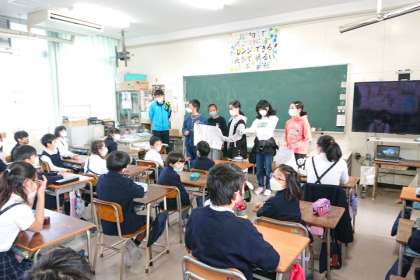 5年生以下の子どもたちは、6年生の話に真剣に耳を傾けていました。
