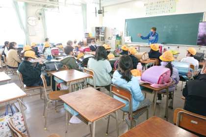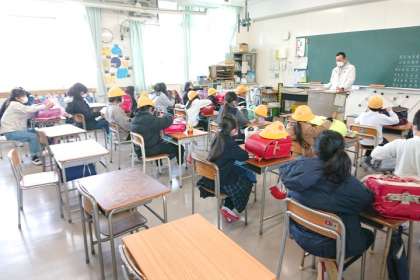 地区別班に分かれ、緊急時に備えての班のメンバーの確認をするとともに、担当から登下校の指導を行いました。