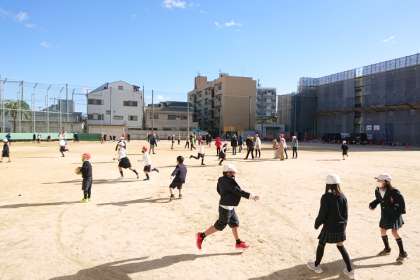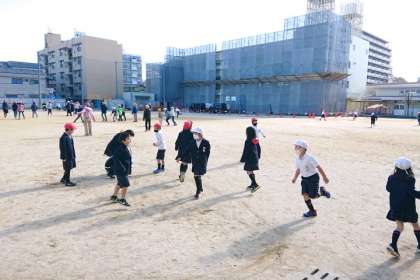 空気は冷たいですが、子どもたちは元気に外遊びをしています。