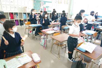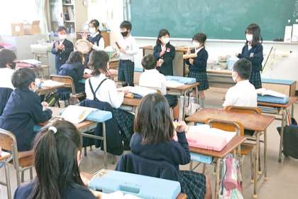 6人でグループになって、みんなの前で発表しました。