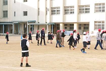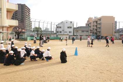 昨日に引き続き、2年生と6年生がいっしょに「ふえおに」をしました。