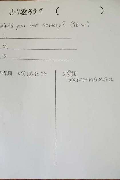 2学期をふりかえり、プリントに「6年生になっていちばんの思い出」「2学期がんばったこと」「2学期がんばりきれなかったこと」を書きました。