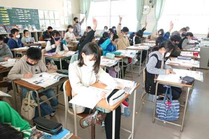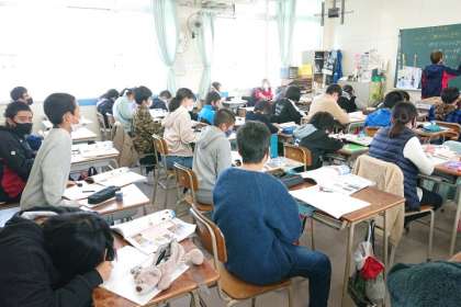 社会科の時間は、東日本大震災で被災した人たちは、どんな願いをもっているのか、教科書で調べました。