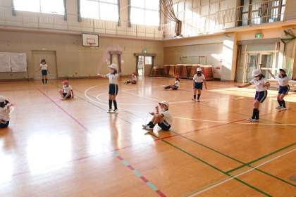 前まわしとび、後ろ回しとび、かけ足とびなど練習しています。