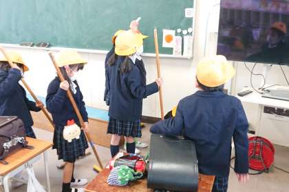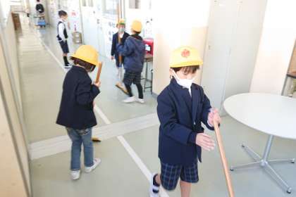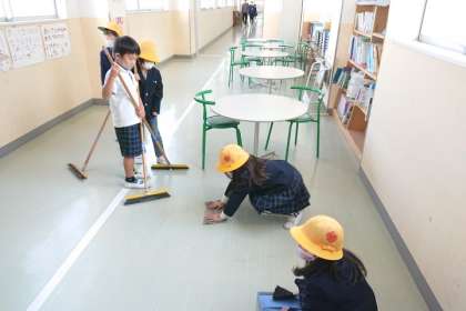 1年生が一生懸命おそうじをしています。