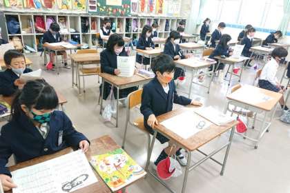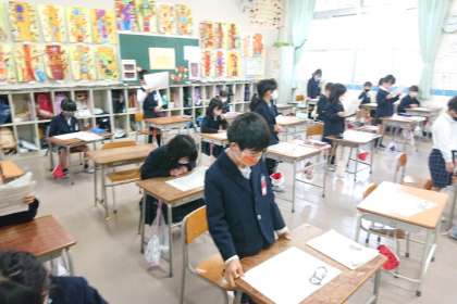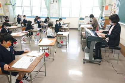 クリスマスソングが聞こえてきたので、教室をのぞいてみると、子どもたちが楽しそうに歌っていました。