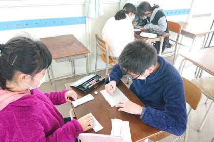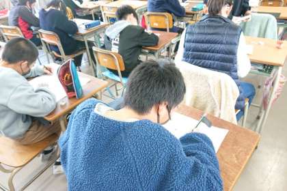となりの教室では、卒業文集に載せる記事を書くために、全員からとったアンケートを集計しています。
