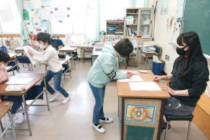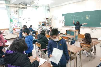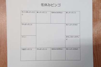 友達どうしでじゃんけんをして、勝った人が、冬休み中楽しかったこと、がんばったこと、お手伝いしたことなどを質問し、相手の名前をカードのマスに書いていきます。