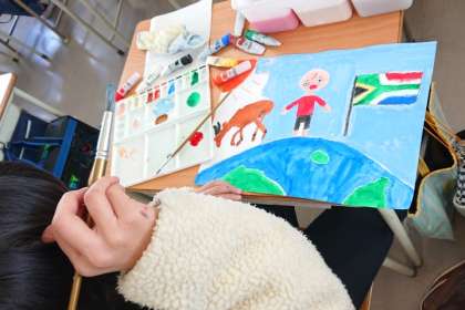 図画工作科の時間は、「なかよくくらす ちきゅうのなかま」をテーマに「エコ絵画コンクール」に出す絵を描きました。