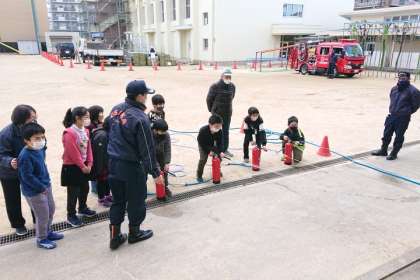 西淀川消防署の方に準備していただき、煙テント、水消火器の体験をさせていただきました。