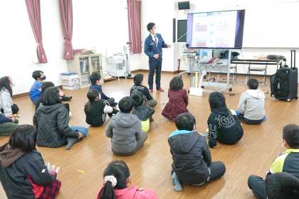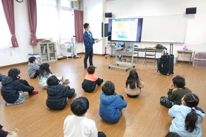 多目的室では、大阪管区気象台の方から、地震のメカニズムや避難の方法について教えていただきました。