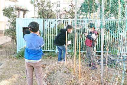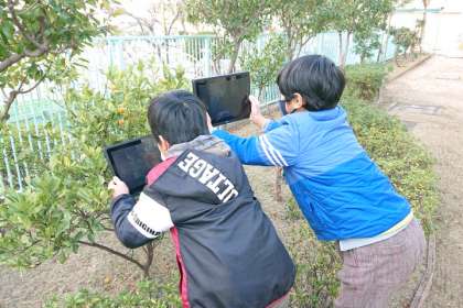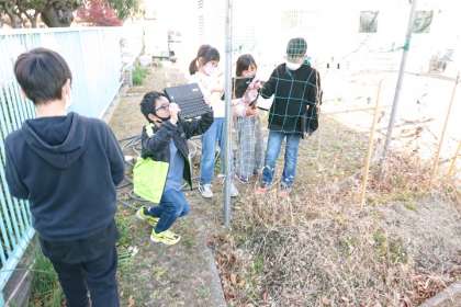 理科の時間は、1人1台PCと棒温度計を持って、校庭の冬の自然を観察しました。
