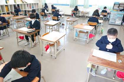 今日は、歌島小学校の子どもたち全員が漢字の問題に取り組む日です。