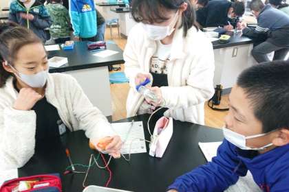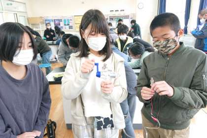 理科の時間は、手回し発電機は、豆電球の明かりをつけたり、モーターを回したりするなど、乾電池と同じ働きをするのかどうかを実験で確認しました。