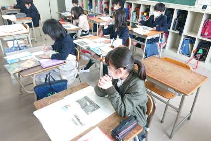 国語科の時間は、教科書の教材文「人をつつむ形 〜世界の家めぐり」を読んで、みんなの家とちがうところや、不思議に思ったことをワークシートに書き出しました。