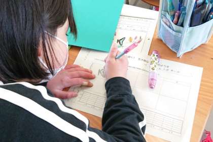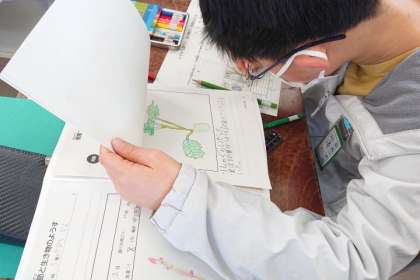 今日は、1年間の生き物のようすをワークシートにまとめています。