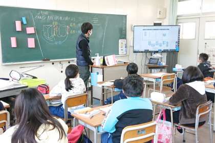 そして、画面にうつっている立体の形が、それぞれ三角柱なのか、四角柱なのか、五角柱なのか、六角柱なのか考えました。