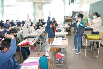 中学校では、どんなことをしたいのか、どんな部活動に入りたいのかを、英語の表現で伝えています。