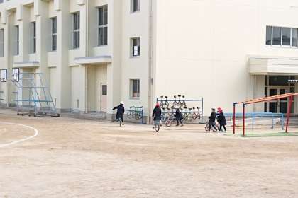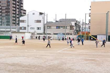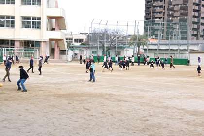 空気はひんやりしていますが、子どもたちは元気に外遊びしています。