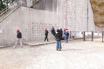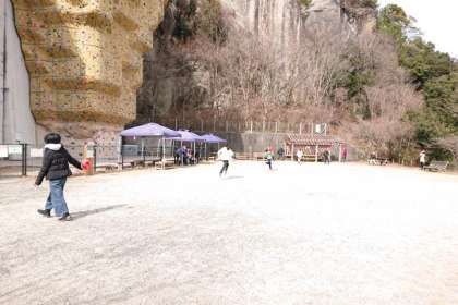 展望台から、つり橋をもう一度渡るグループと、つり橋を渡らず別のルートを歩くグループに別れ、再び公園入口の広場に戻ってきました。