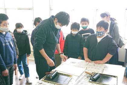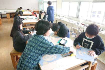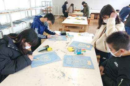 彫刻刀を使って、自分が描いた下絵の通りに彫っていきます。