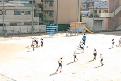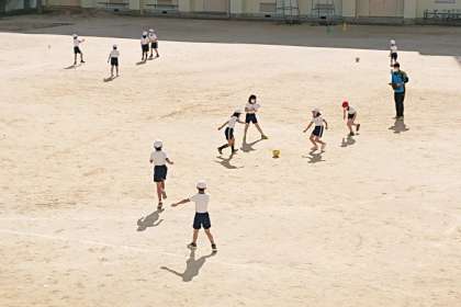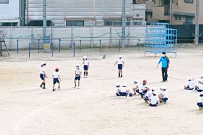 体育科の時間は、運動場でサッカーの学習をしました。