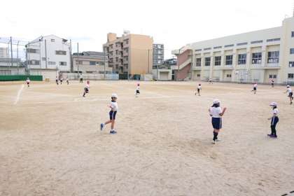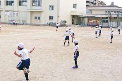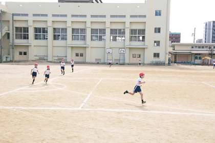 体育科の時間は、まず体を温めるためにかけ足やなわとびの練習をしました。