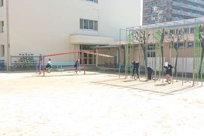 ドッジボールやなわとび、一輪車の練習をしている子どもたちがいます。