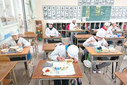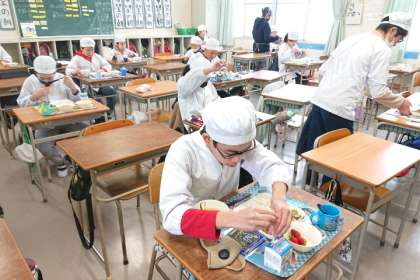 1年生もおいしそうに給食を食べています。