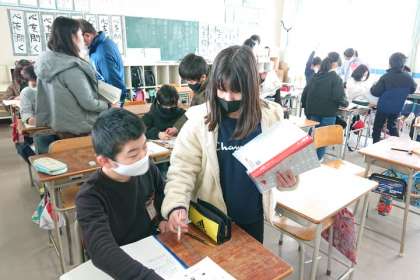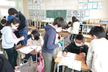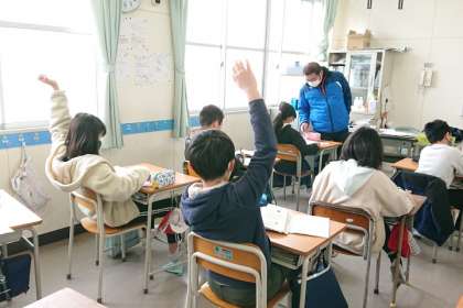 「1こ100円のプリンをいくつか買って50円の箱に入れてもらいます。プリンの数と代金の関係を調べましょう。」の問題について、関係を式に表したり、表に書いて調べたりしています。