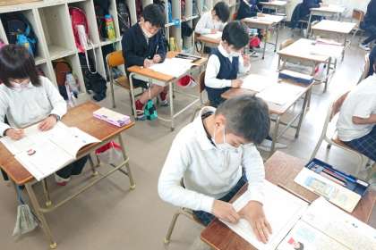 書き終わった人から、声に出して読む練習をしています。