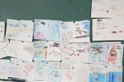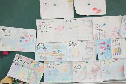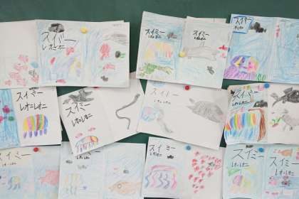 国語科の時間に、お話から読み取ったことをもとに「スイミー」の表紙をかきました。