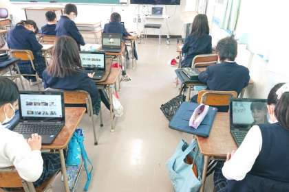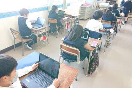 作業が早く終わった子どもから、1人1台PCでNHK for Schoolなどの動画を見て自主学習しています。