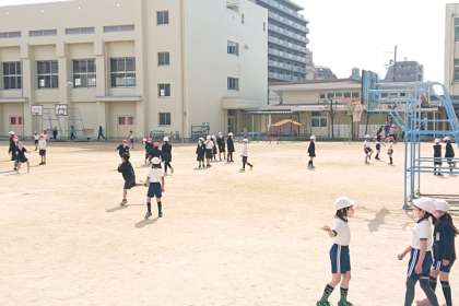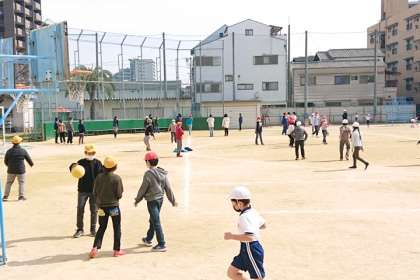 子どもたちが元気に外遊びをしています。