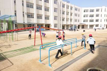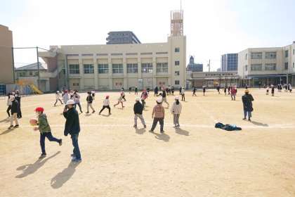 子どもたちが元気に外遊びをしています。