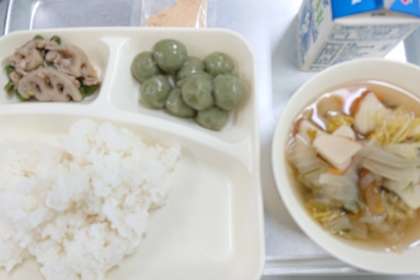 今日のだんごに使われているよもぎはキク科の植物で、山や野原に自然に生えています。春に生えるやわらかな新芽をすりつぶしてだんごに入れています。