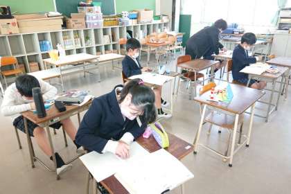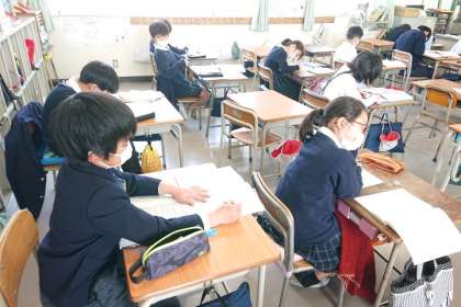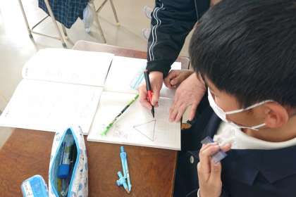 コンパスを使って、正三角形を描く問題などに取り組んでいます。