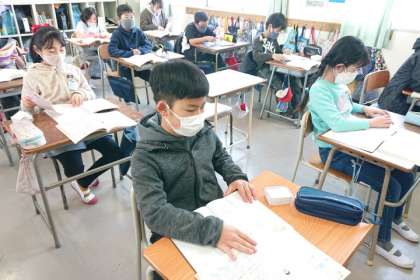 算数科の時間は、直方体の展開図を作って箱を組み立て、重なる辺や頂点を調べました。