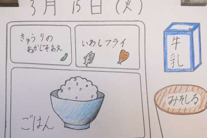 給食委員会の子どもが描いたイラストの食器が、とてもリアルです。