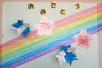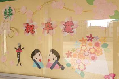 校内のあちこちに卒業をお祝いする掲示などがあります。