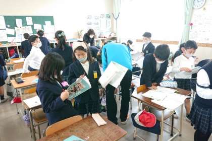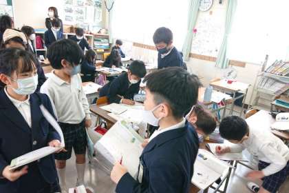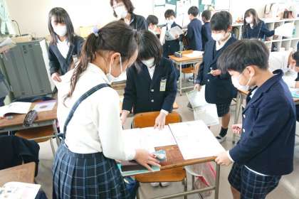 自分が考えたことを、友達同士交流しています。