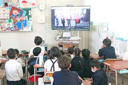 これまで、各学年の子どもたちが6年生へのお祝いメッセージを撮影して、6年生にビデオを見てもらいました。