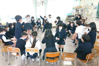 今日は、みんなで「ハンカチ落とし」や「なんでもバスケット」をして楽しみました。