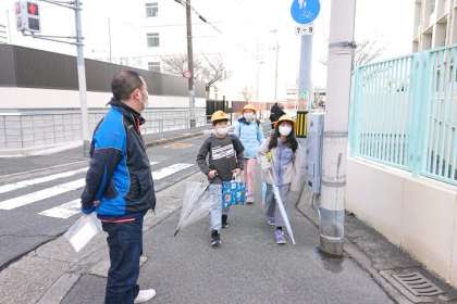 地域見守り隊の皆様、暑い日も寒い日も、雨の日も風が強い日も、1年間毎朝子どもたちの登校のようすを見ていただき、ありがとうございました。