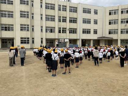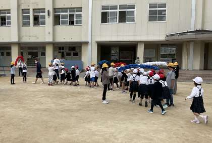 1年生と上級生が初めて対面しました。6年生からペンダントをもらって嬉しそうです。