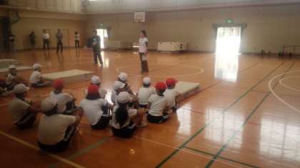 跳び箱でかかえこみとびを跳べるようにするため、まず、マットを使って練習を行いました。