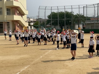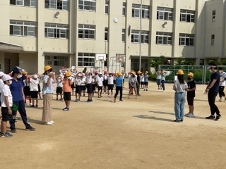 先日、初めてのたてわり班活動が行われ、班が編成されました。今日は集会委員による初めてのゲーム集会です。今年転勤してこられた先生方に関するクイズの答えを班のみんなで考えます。「校長先生は50歳より上である」「保健室はけがを治療してもらえるところである」「事務室はジャングルジムのそばにある」〇かな?×かな?