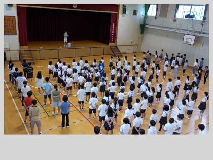 「世界中のこどもたちが」を全校児童で歌いました。感染症対策としてマスク着用のままでしたが、みんなで声を合わせて合唱しました。
